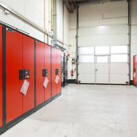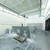 En outre, et juste à temps pour le début de 2019, HBE a mis en service une nouvelle installation de finition et de séchage. Dans la grande cabine de 9 x 6 x 4 m, les ensembles soudés tels que les réservoirs hydrauliques, les collecteurs d’huile ou les bâtis peuvent être apprêtés et peints selon les exigences du client. Tous les revêtements classiques et diluables à l'eau peuvent être utilisés pour la finition. Grâce à l'option de passage rapide entre les opérations de pulvérisation et de séchage, HBE propose des délais considérablement réduits. Une grue de 1 tonne à air comprimé facilite la manutention dans la cabine sur une distance de 7 m. Dans le même temps, le stock de peintures a été converti conformément aux dernières réglementations en matière d’environnement et de sécurité. Plusieurs armoires de sécurité avec ventilation intégrée assurent un stockage sûr et correct des matières dangereuses et inflammables sur le lieu de travail.